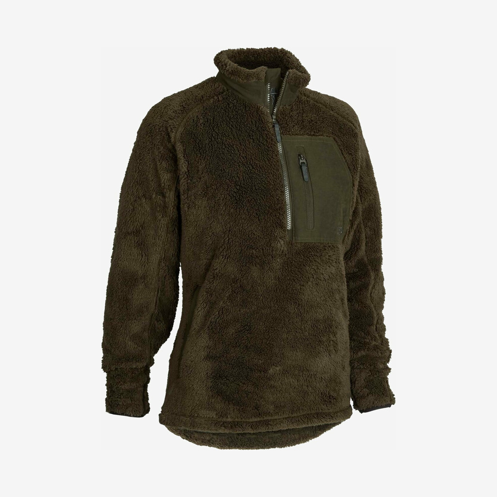 Rikvi fleecetrøje fra Northern Hunting er en ekstremt isolerende langhåret anoraktrøje til kvinder. Trøjen er perfekt som yderlag i tørt og vindstille vejr, eller som mellemlag i vinterens kolde måneder.